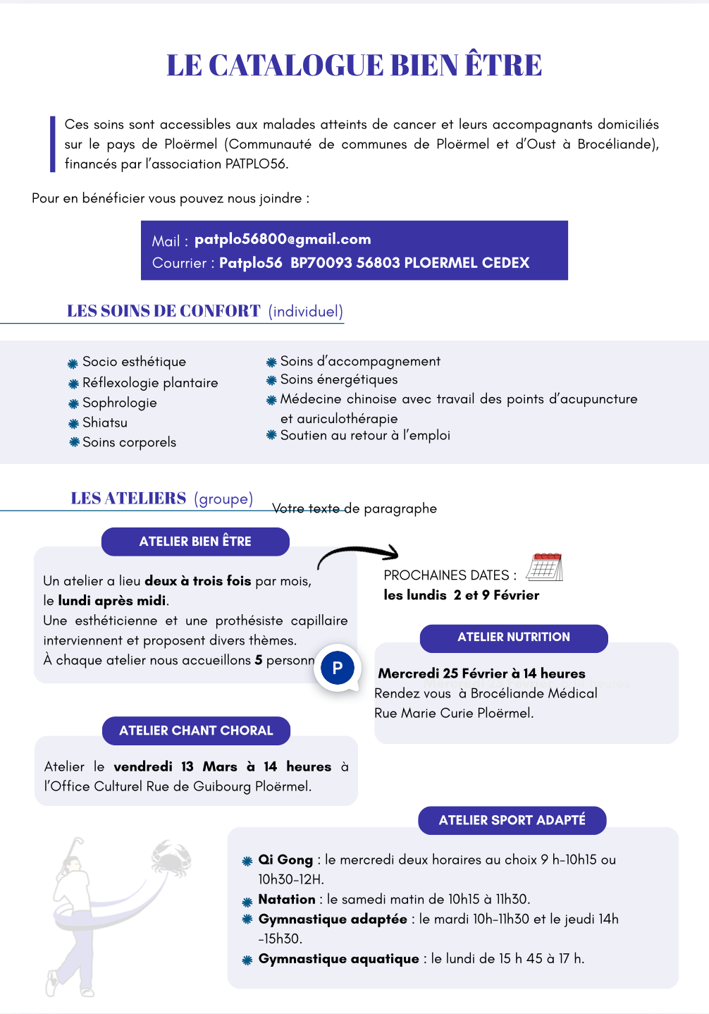 Patplo offre, à l’ensemble des personnes atteintes du cancer, des activités et des soins pour les accompagner dans leur combat.